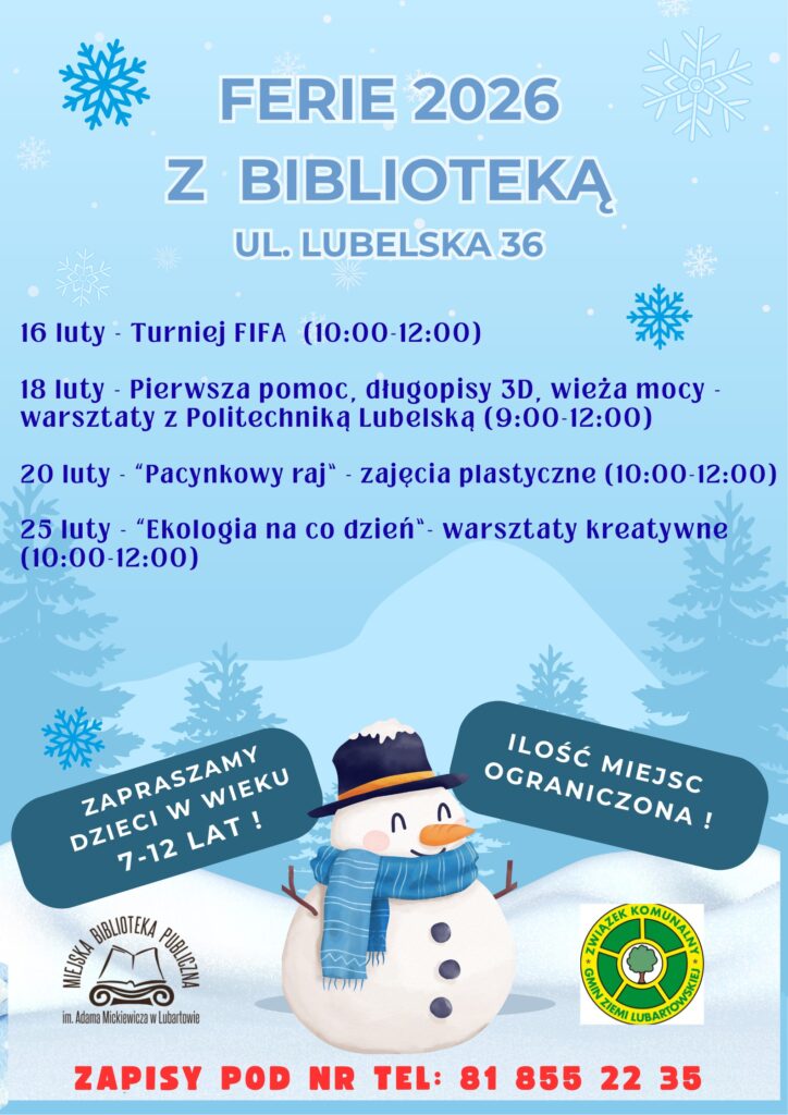 Ferie zimowe to świetny czas na naukę przez zabawę – dlatego, wspólnie z instytucjami kultury z terenu gmin zrzeszonych w Związku, serdecznie zapraszamy dzieci i młodzież na ekologiczne zajęcia feryjne, podczas których połączymy wiedzę o środowisku z ruchem, grą zespołową i dobrą zabawą.